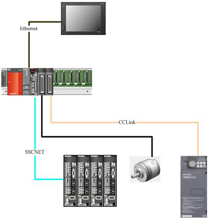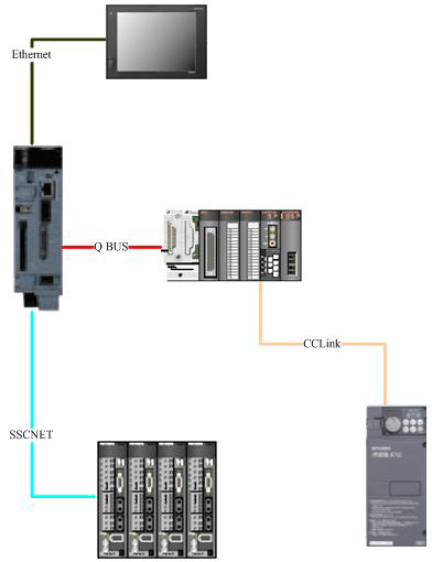 該配置首先需要通過以太網(wǎng)將視覺系統(tǒng)與三菱PLC相連,以便傳輸位置數(shù)據(jù)。同時需要一個提供插補(bǔ)功能的運(yùn)動控制器將機(jī)械抓取裝置以最快的速度抓取物品,以提高生產(chǎn)效率。